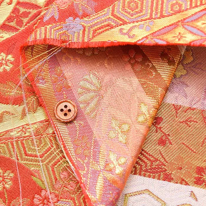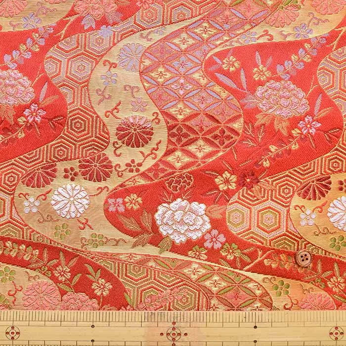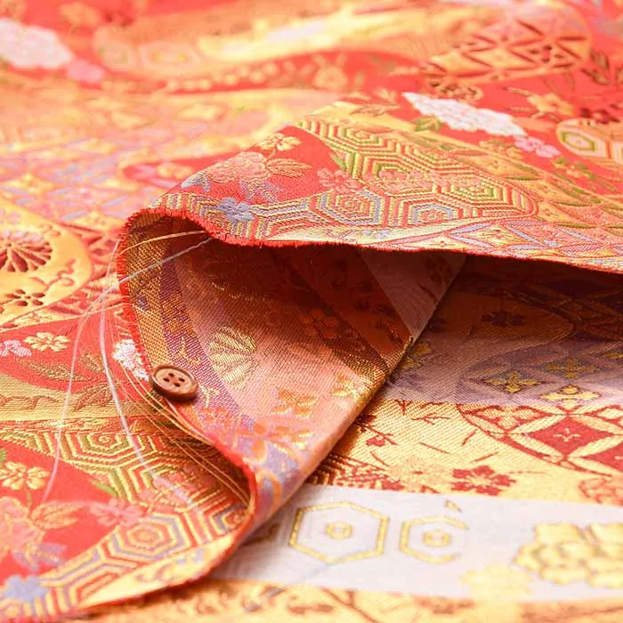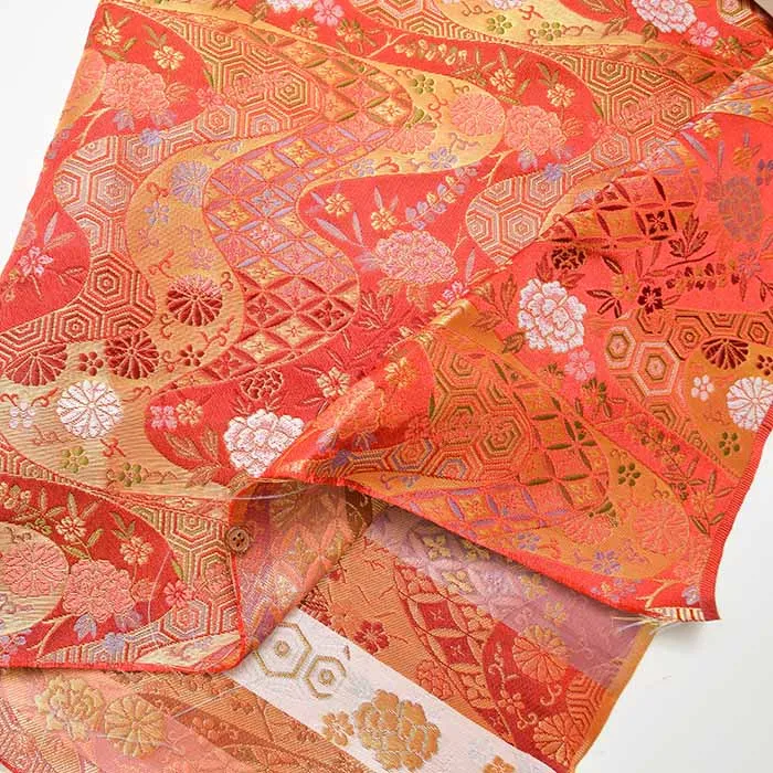金糸や銀糸に色糸を交えて緯糸にし、紋様が浮き上がるように織った紋織物のひとつです。
