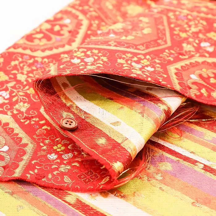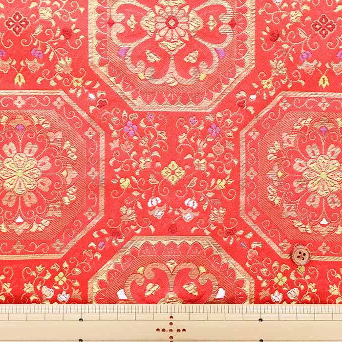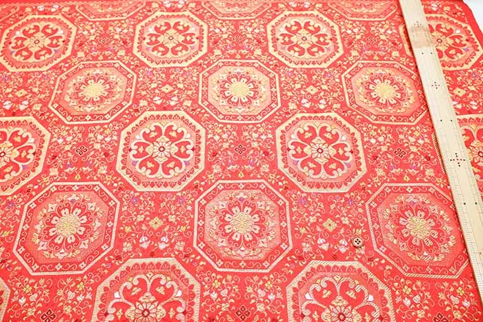 金糸や銀糸に色糸を交えて緯糸にし、紋様が浮き上がるように織った紋織物のひとつです。