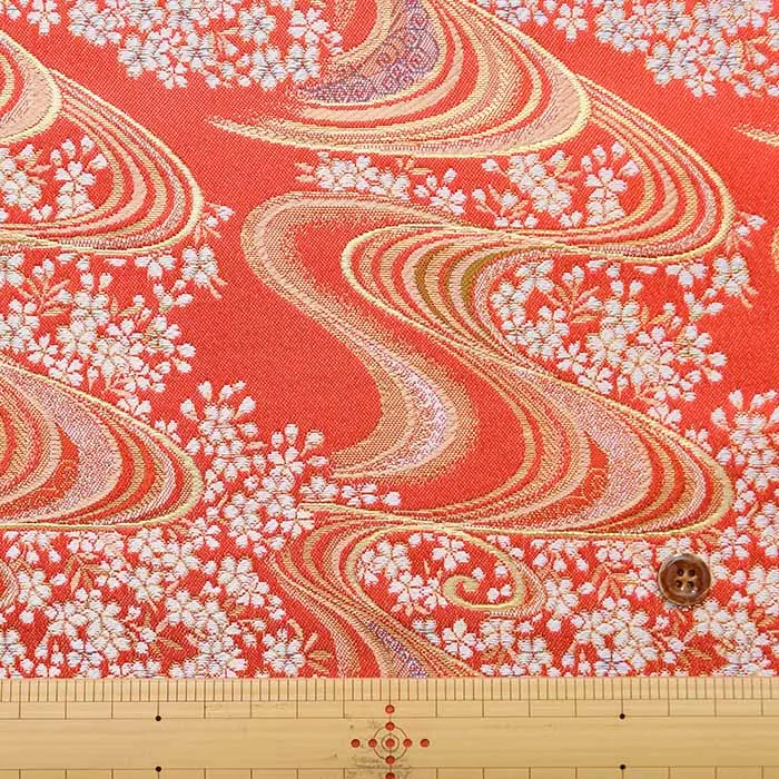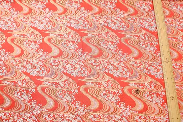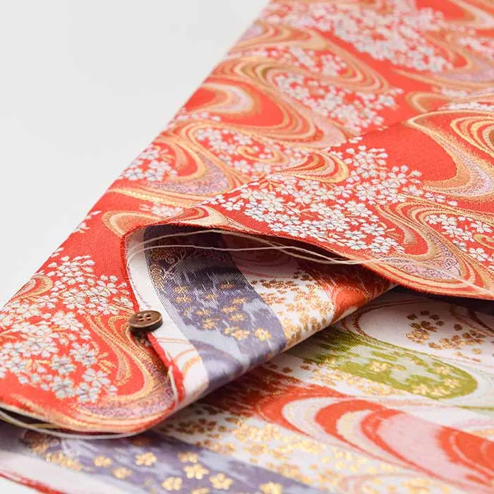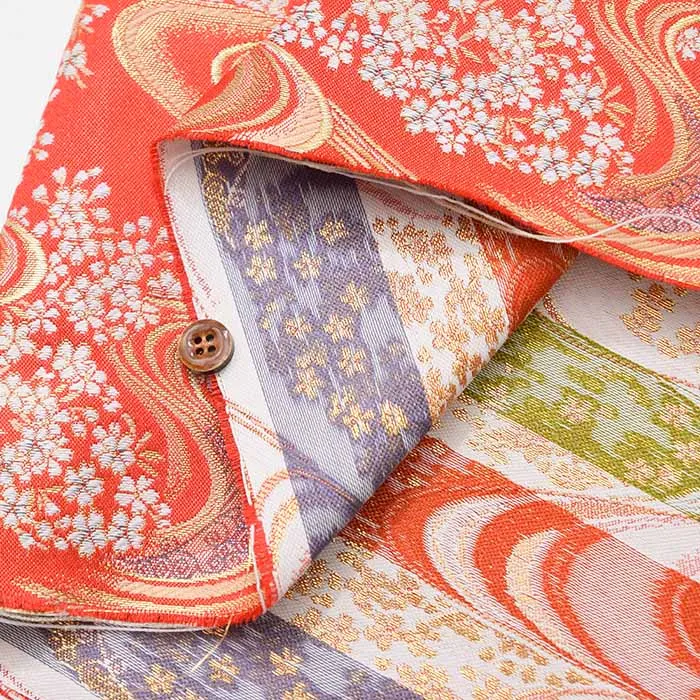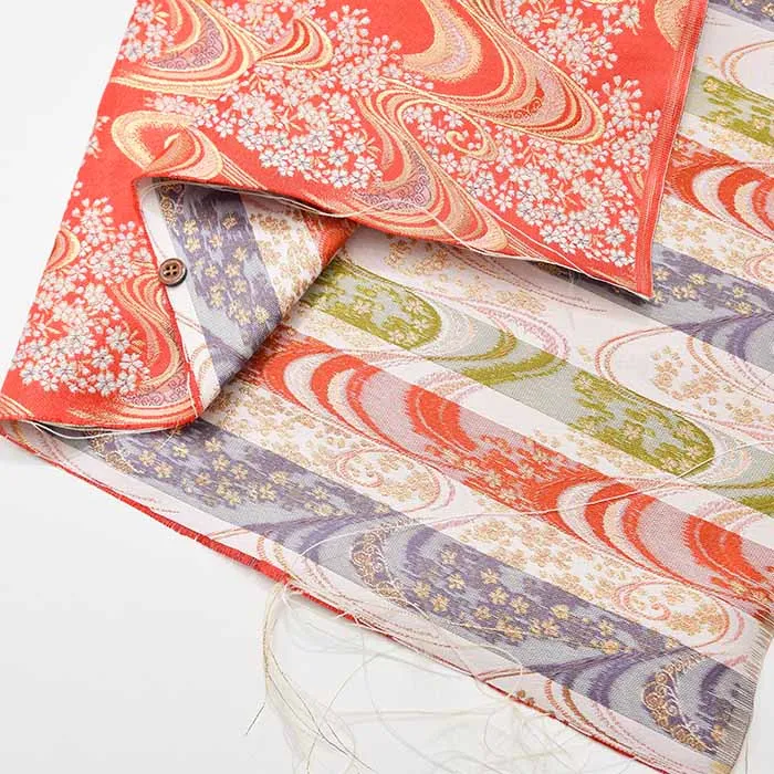 金糸や銀糸に色糸を交えて緯糸にし、紋様が浮き上がるように織った紋織物のひとつです。