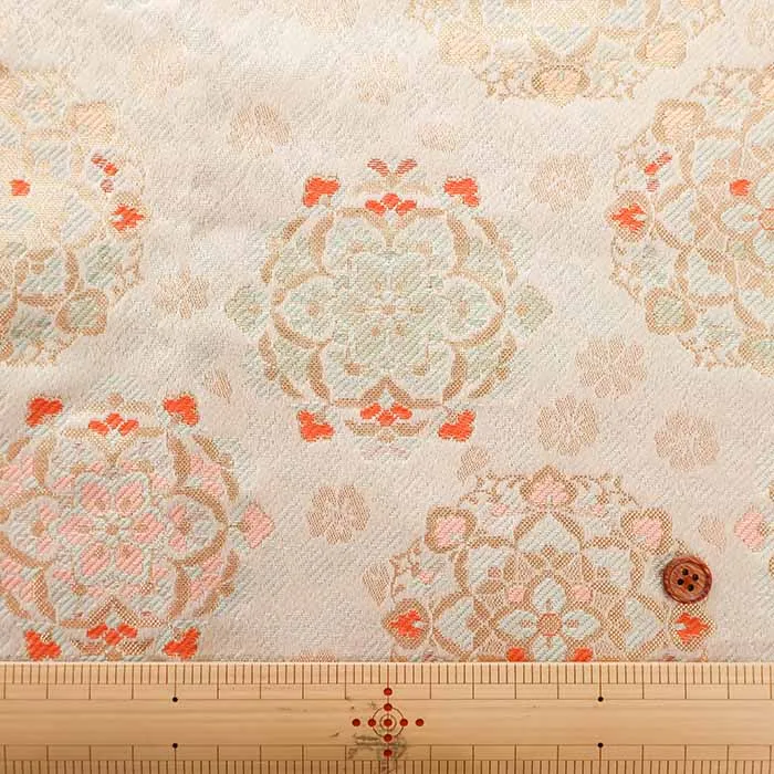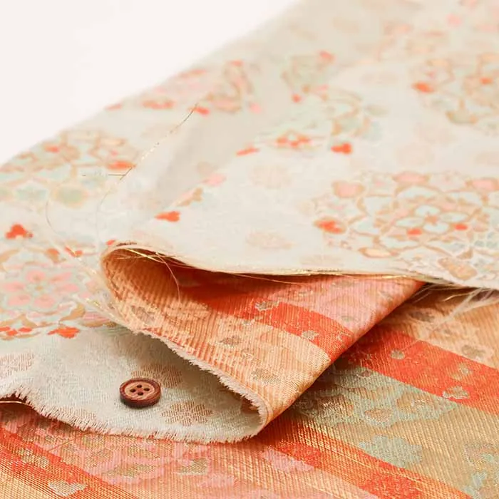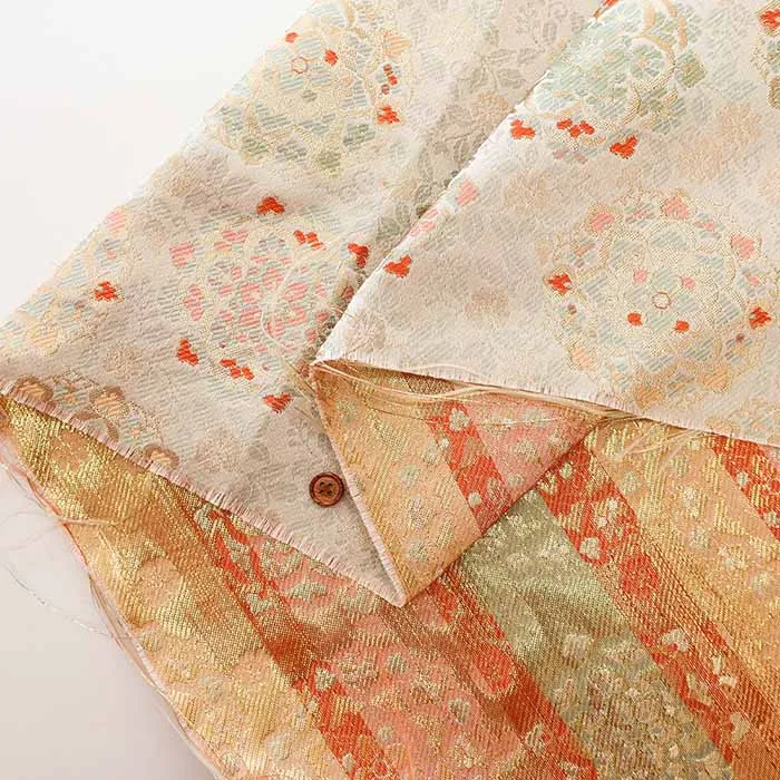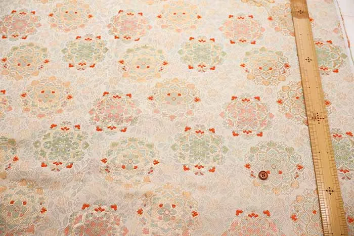 金糸や銀糸に色糸を交えて緯糸にし、紋様が浮き上がるように織った紋織物のひとつです。