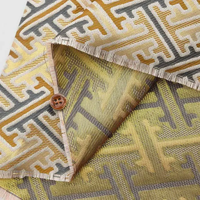 金糸や銀糸に色糸を交えて緯糸にし、紋様が浮き上がるように織った紋織物のひとつです。