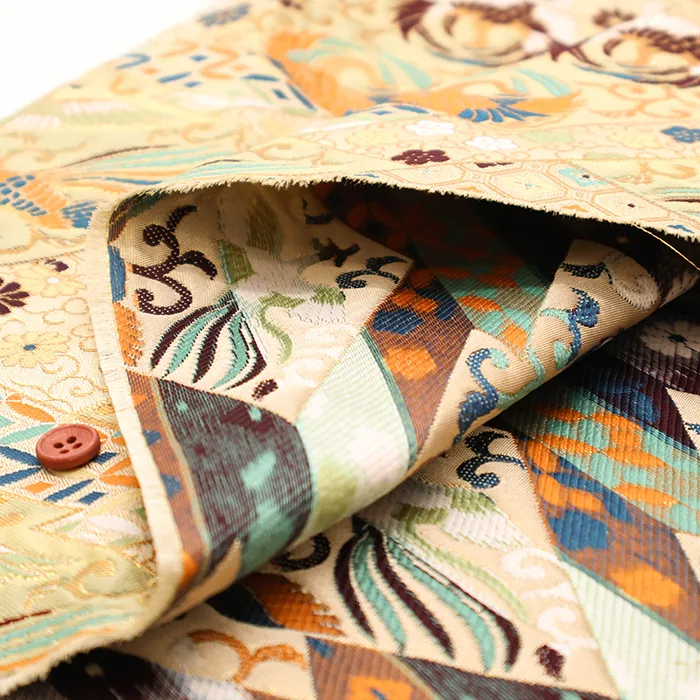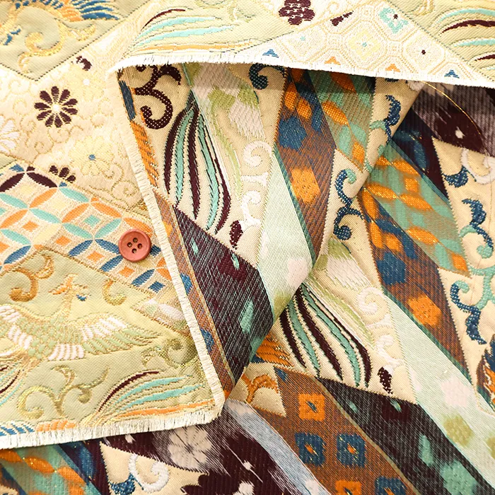 金糸や銀糸に色糸を交えて緯糸にし、紋様が浮き上がるように織った紋織物のひとつです。