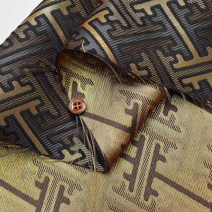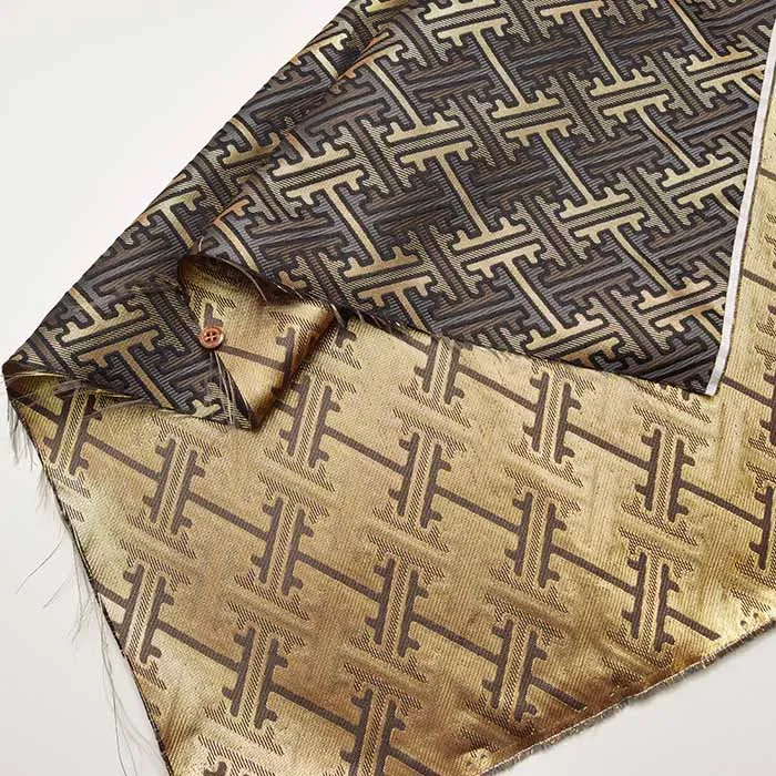金糸や銀糸に色糸を交えて緯糸にし、紋様が浮き上がるように織った紋織物のひとつです。