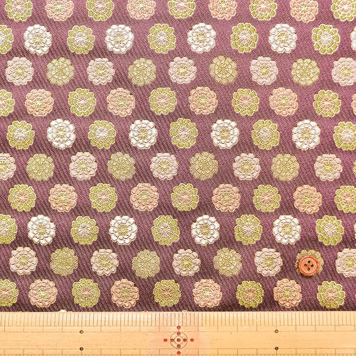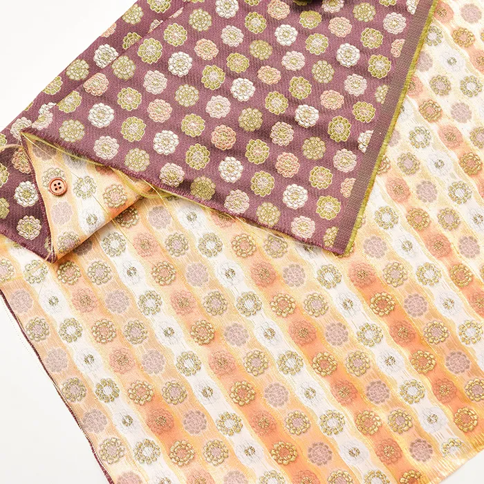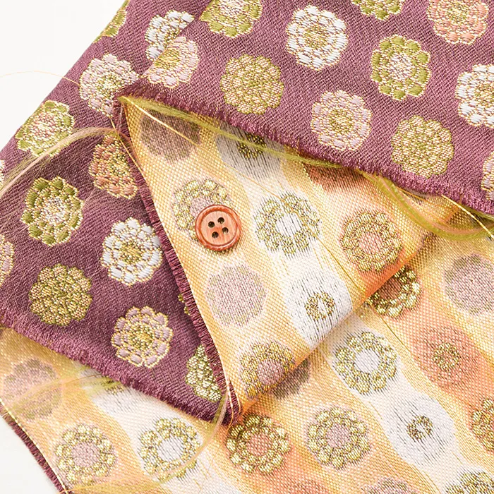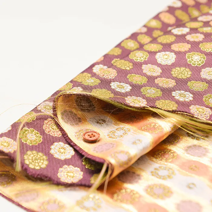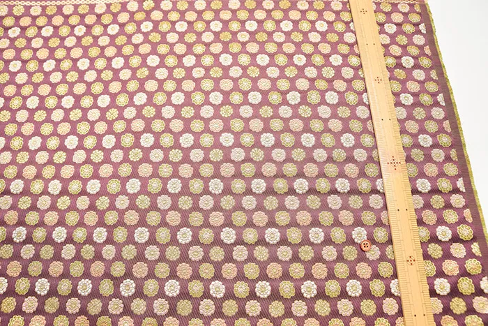 金糸や銀糸に色糸を交えて緯糸にし、紋様が浮き上がるように織った紋織物のひとつです。