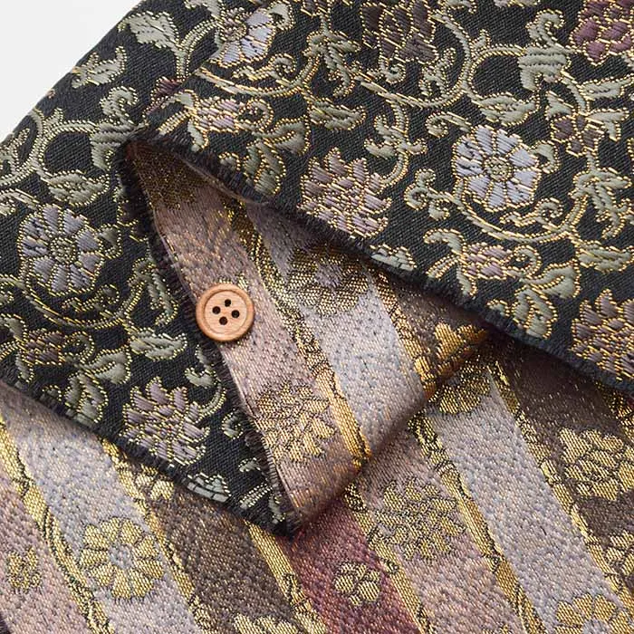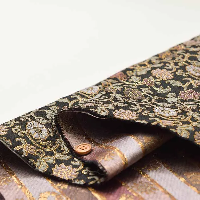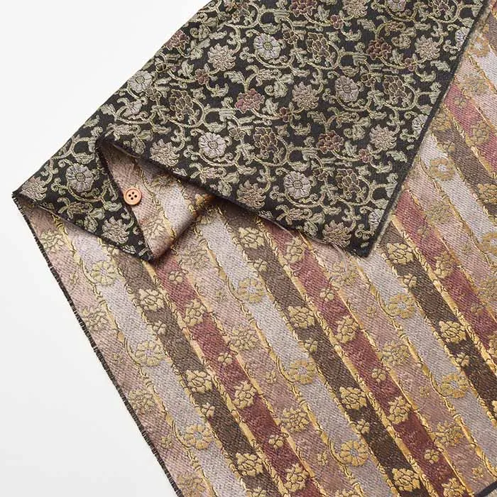 金糸や銀糸に色糸を交えて緯糸にし、紋様が浮き上がるように織った紋織物のひとつです。