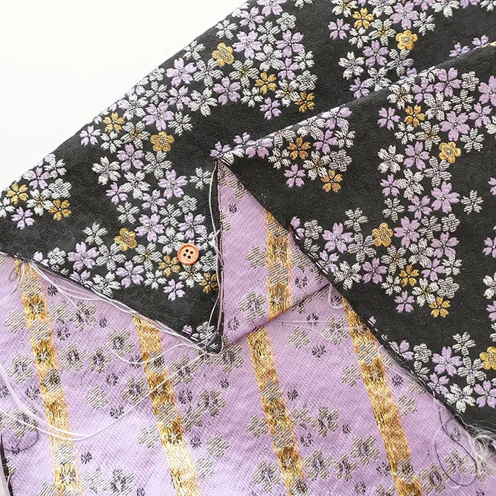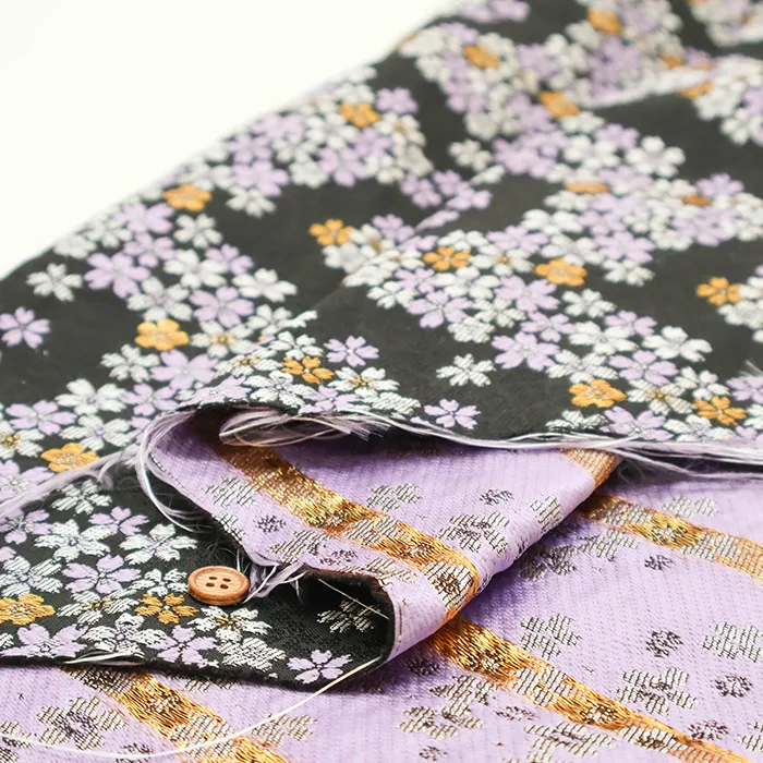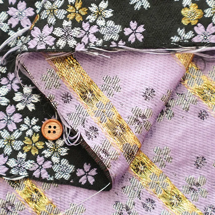 金糸や銀糸に色糸を交えて緯糸にし、紋様が浮き上がるように織った紋織物のひとつです。