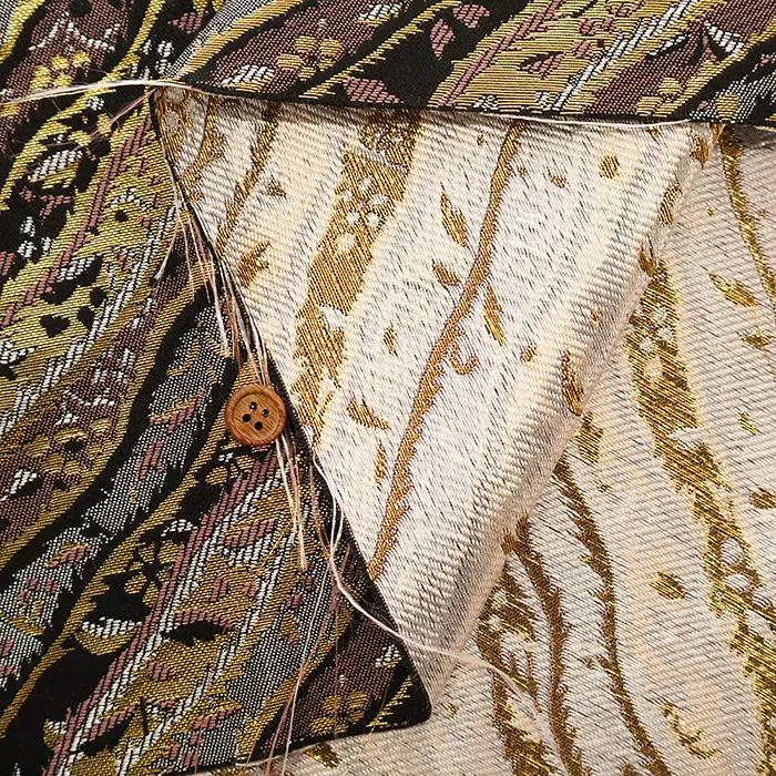 金糸や銀糸に色糸を交えて緯糸にし、紋様が浮き上がるように織った紋織物のひとつです。
