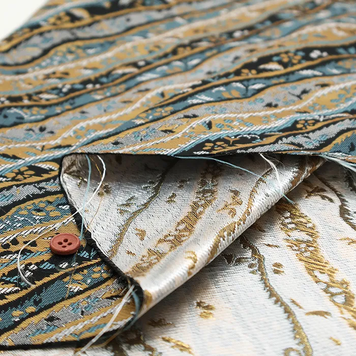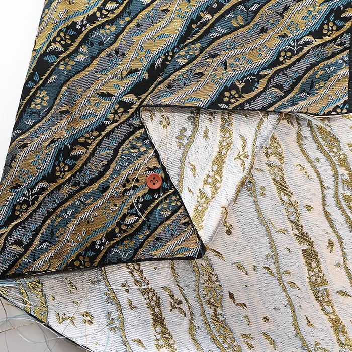 金糸や銀糸に色糸を交えて緯糸にし、紋様が浮き上がるように織った紋織物のひとつです。