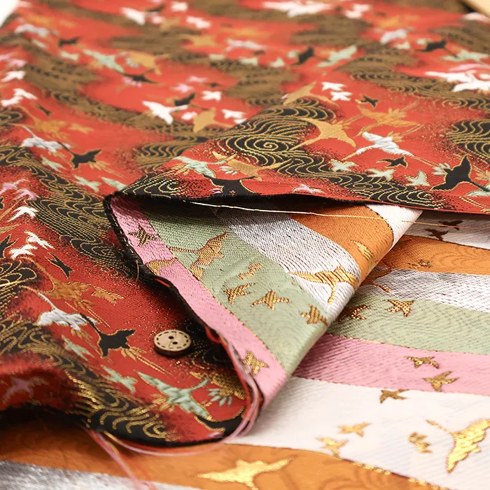 金糸や銀糸に色糸を交えて緯糸にし、紋様が浮き上がるように織った紋織物のひとつです。