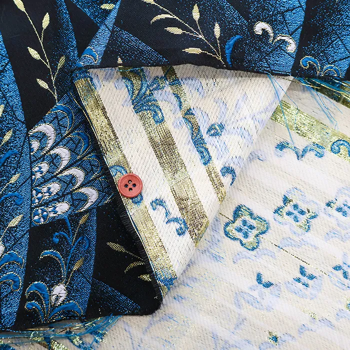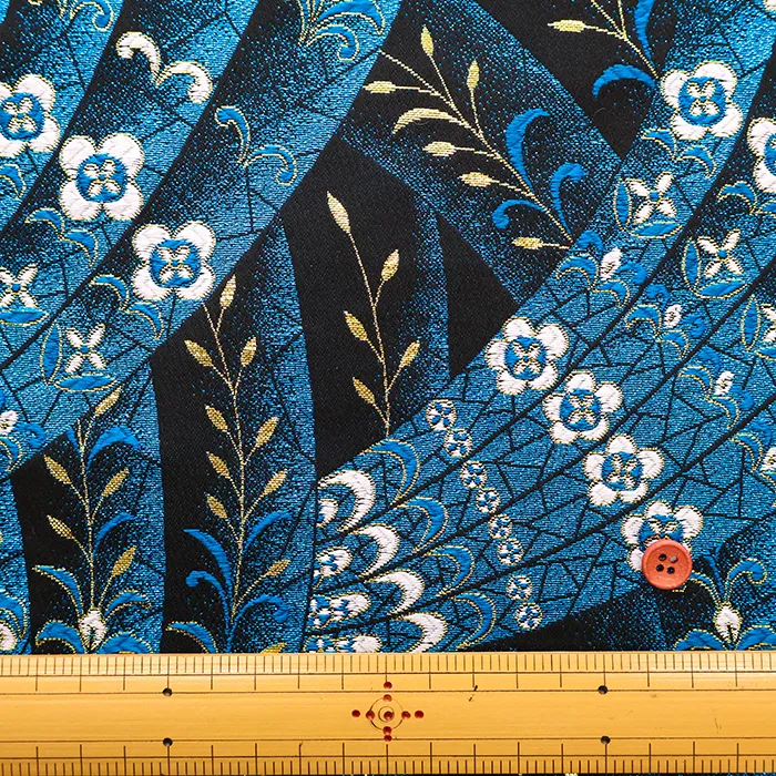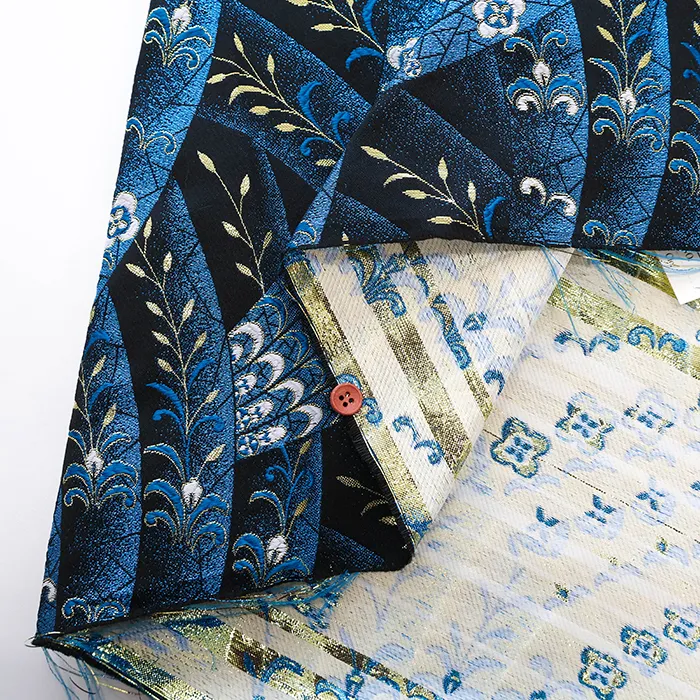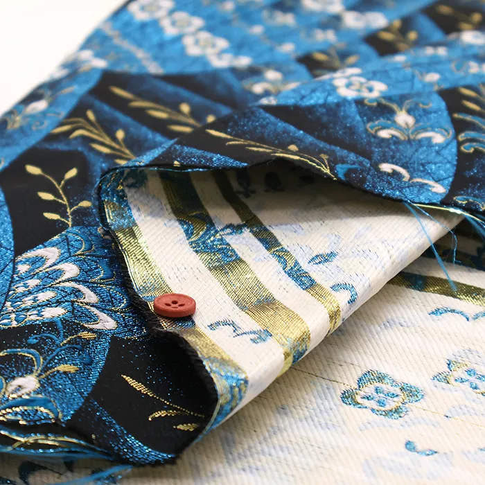 金糸や銀糸に色糸を交えて緯糸にし、紋様が浮き上がるように織った紋織物のひとつです。