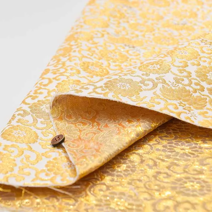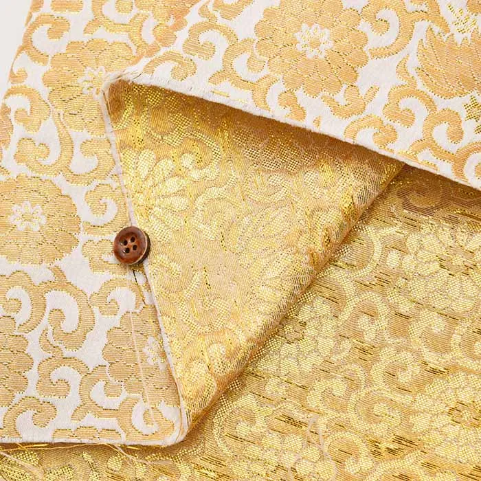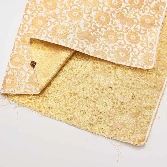 金糸や銀糸に色糸を交えて緯糸にし、紋様が浮き上がるように織った紋織物のひとつです。
