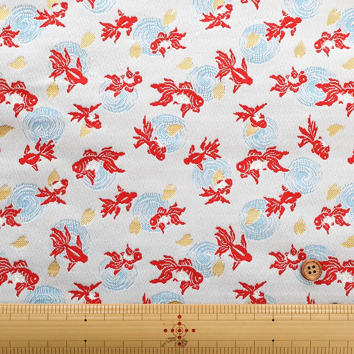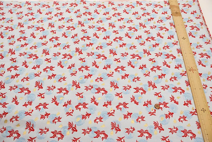 金糸や銀糸に色糸を交えて緯糸にし、紋様が浮き上がるように織った紋織物のひとつです。