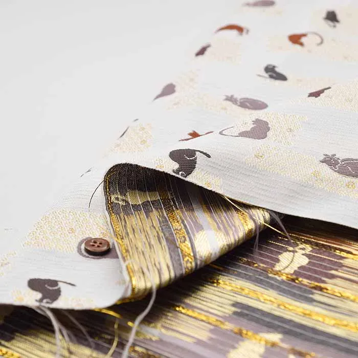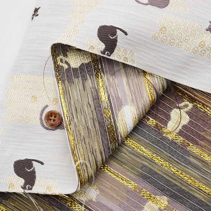 金糸や銀糸に色糸を交えて緯糸にし、紋様が浮き上がるように織った紋織物のひとつです。