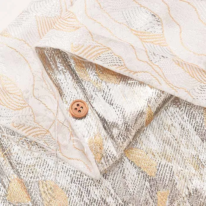 金糸や銀糸に色糸を交えて緯糸にし、紋様が浮き上がるように織った紋織物のひとつです。