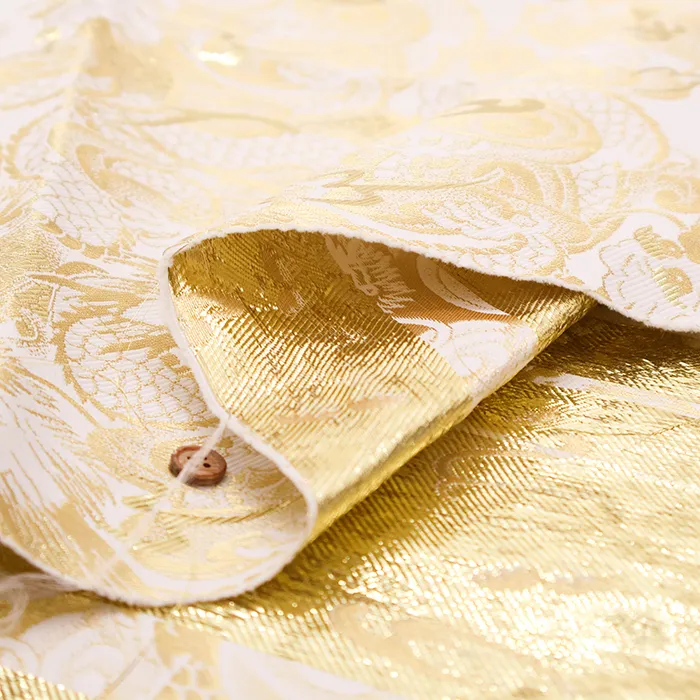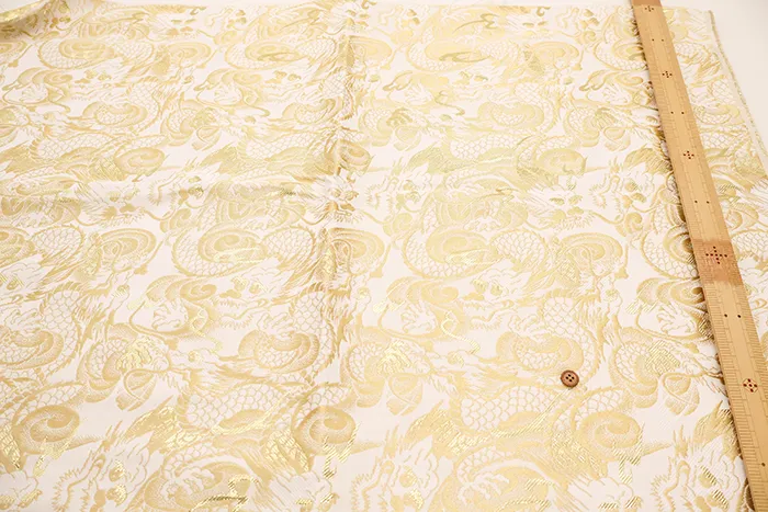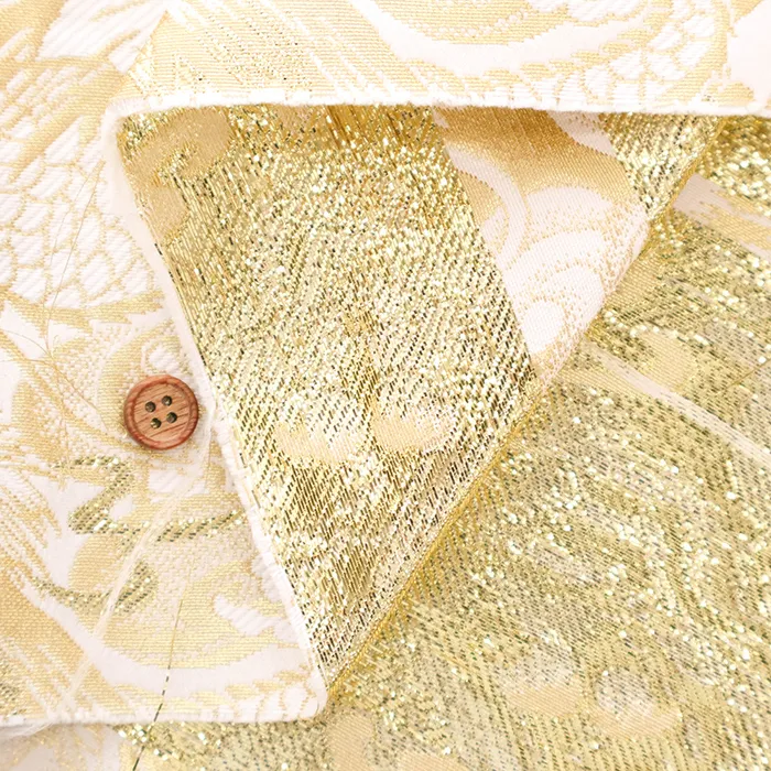 金糸や銀糸に色糸を交えて緯糸にし、紋様が浮き上がるように織った紋織物のひとつです。