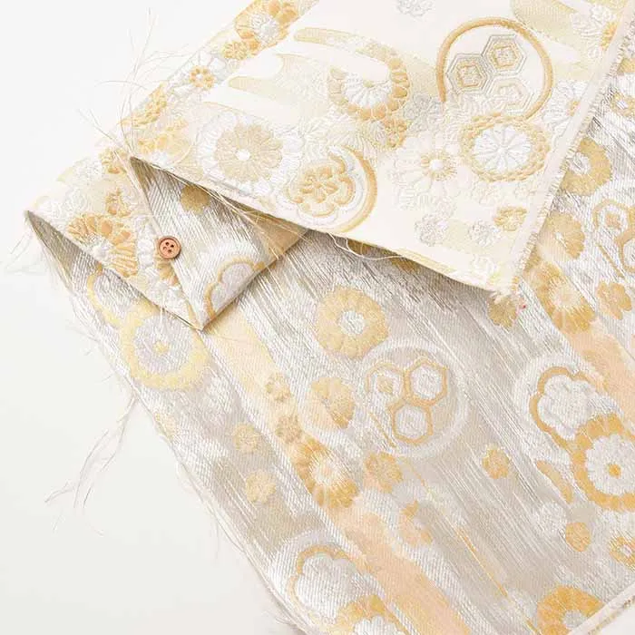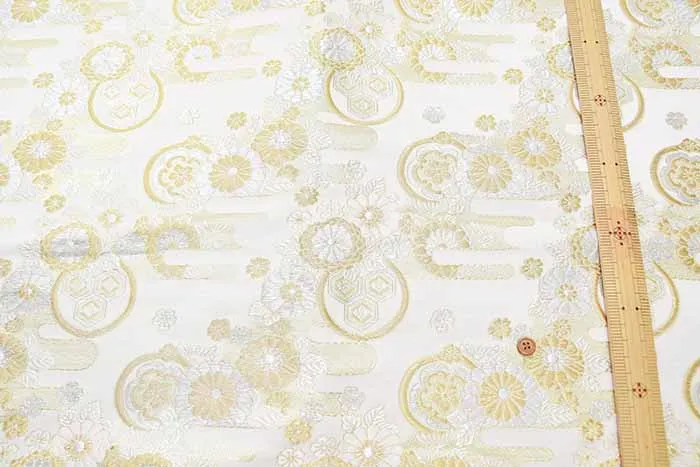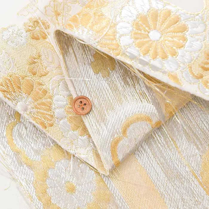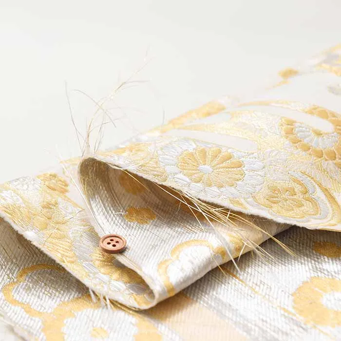 金糸や銀糸に色糸を交えて緯糸にし、紋様が浮き上がるように織った紋織物のひとつです。