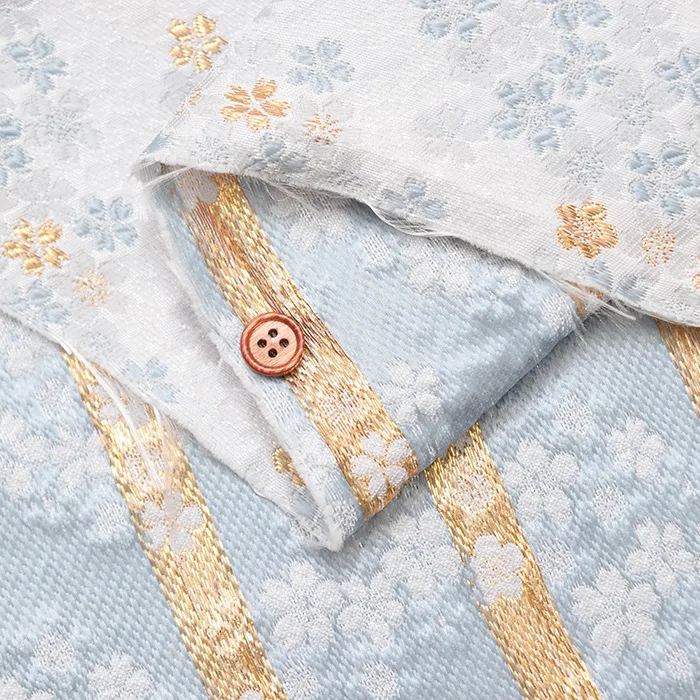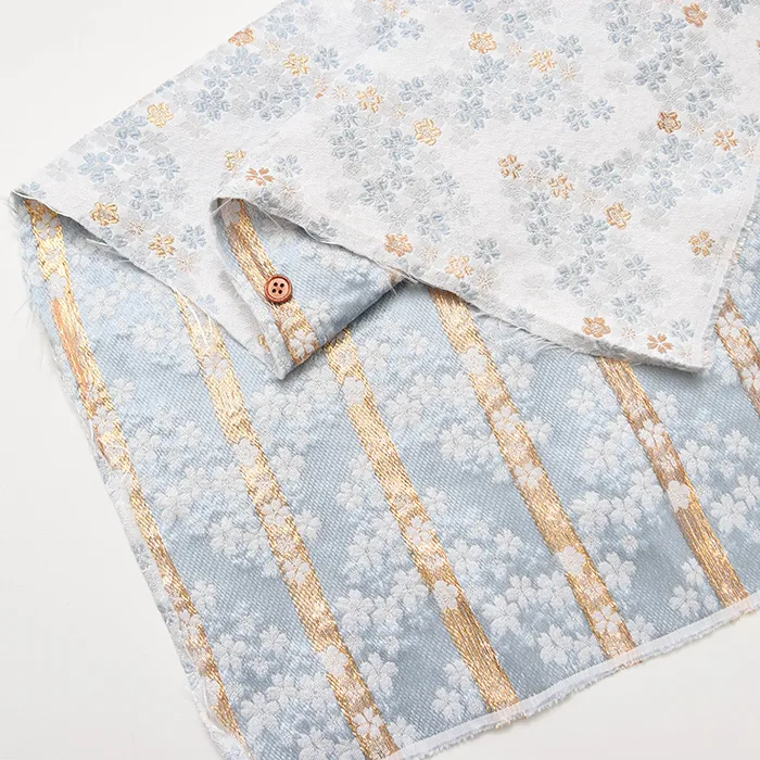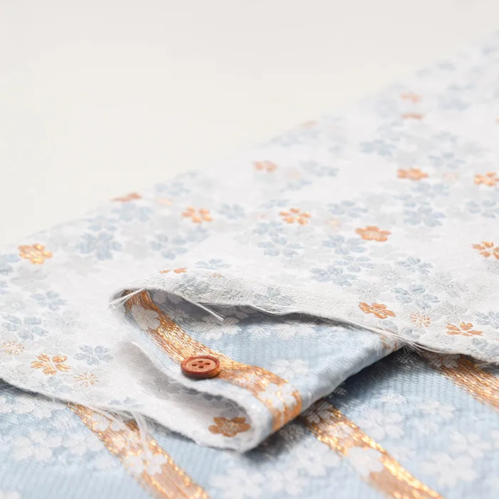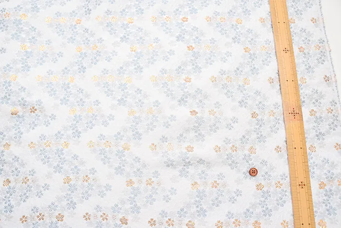金糸や銀糸に色糸を交えて緯糸にし、紋様が浮き上がるように織った紋織物のひとつです。