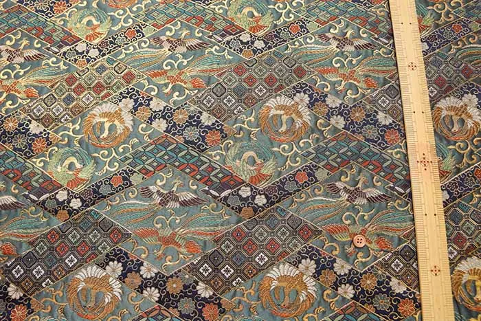 金糸や銀糸に色糸を交えて緯糸にし、紋様が浮き上がるように織った紋織物のひとつです。
