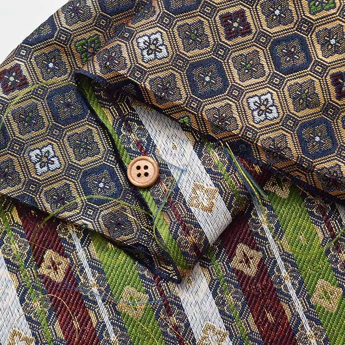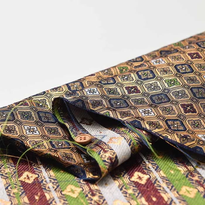 金糸や銀糸に色糸を交えて緯糸にし、紋様が浮き上がるように織った紋織物のひとつです。