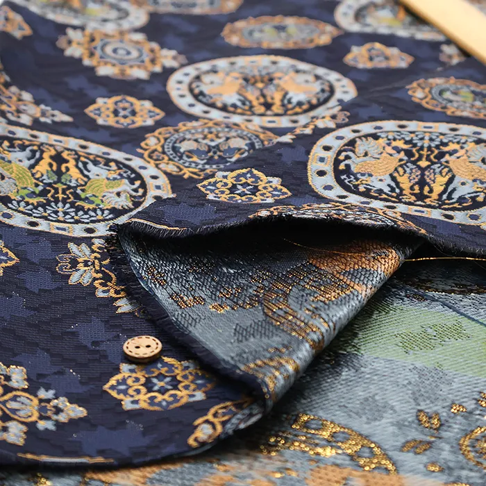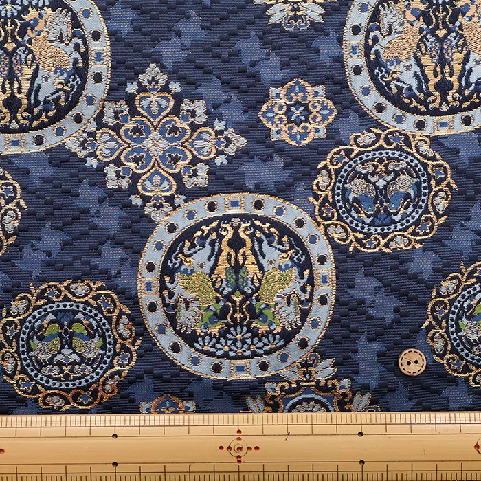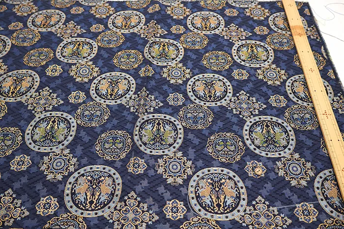 金糸や銀糸に色糸を交えて緯糸にし、紋様が浮き上がるように織った紋織物のひとつです。
