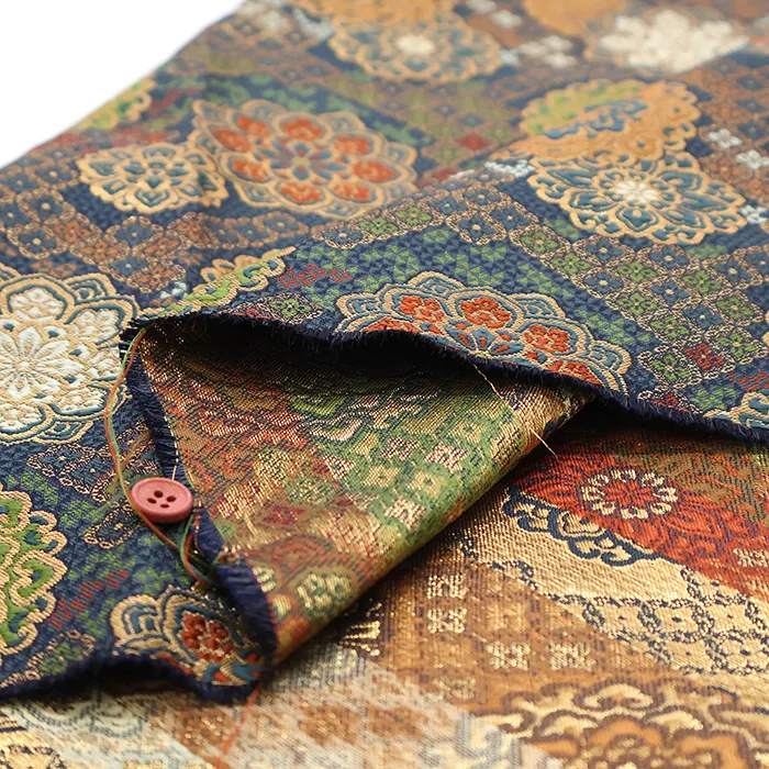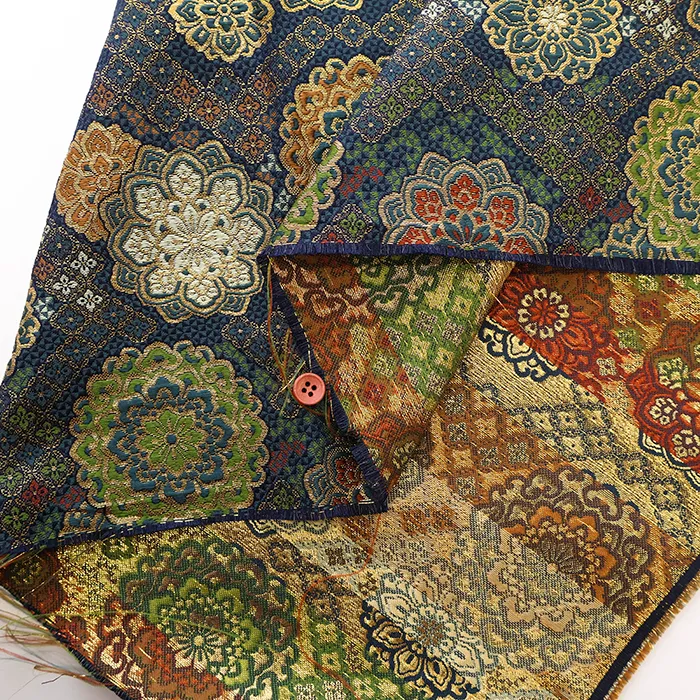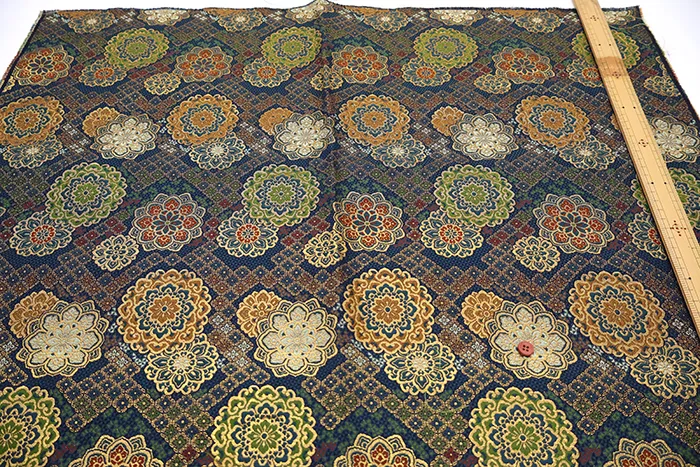 金糸や銀糸に色糸を交えて緯糸にし、紋様が浮き上がるように織った紋織物のひとつです。