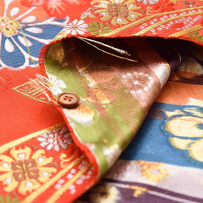 金糸や銀糸に色糸を交えて緯糸にし、紋様が浮き上がるように織った紋織物のひとつです。