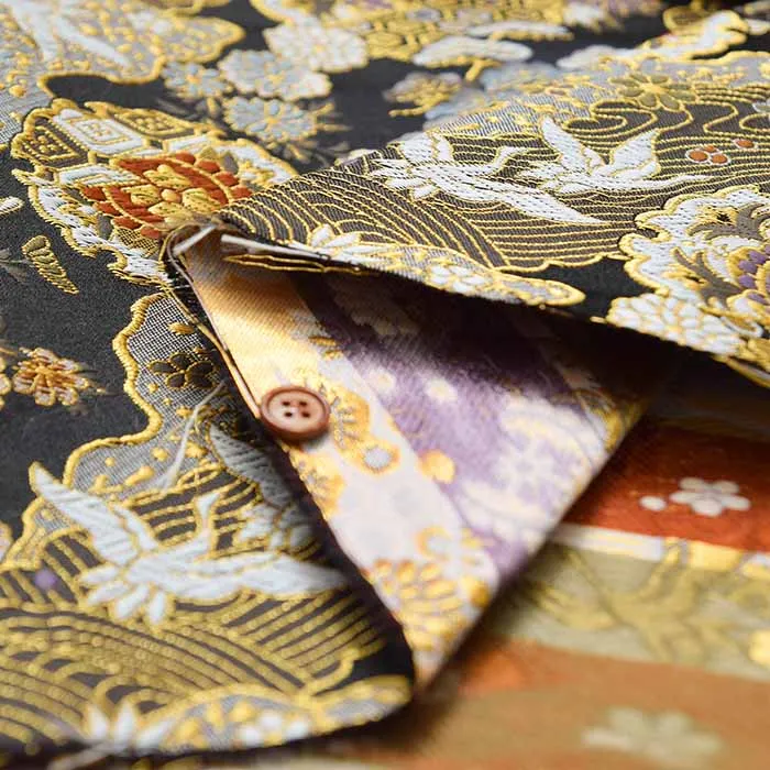 金糸や銀糸に色糸を交えて緯糸にし、紋様が浮き上がるように織った紋織物のひとつです。