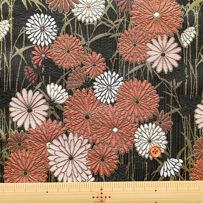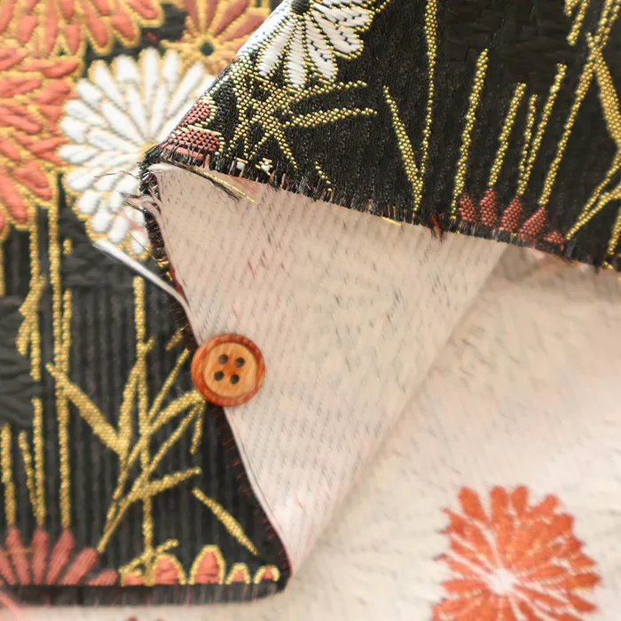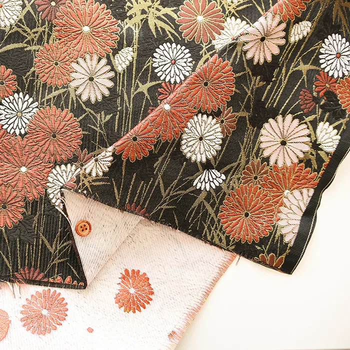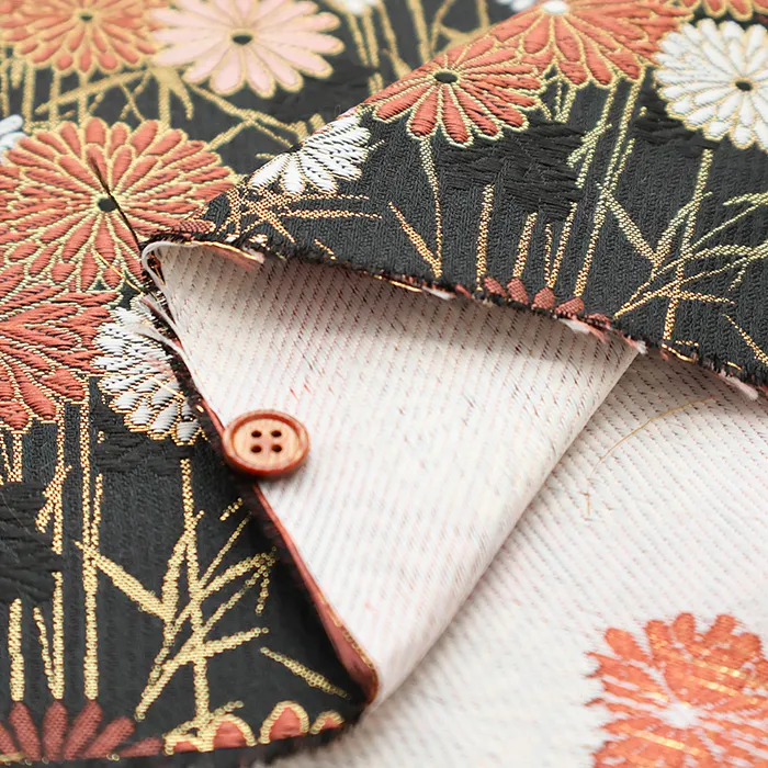 金糸や銀糸に色糸を交えて緯糸にし、紋様が浮き上がるように織った紋織物のひとつです。