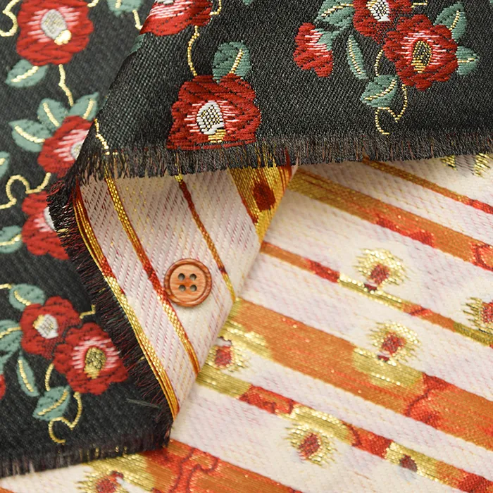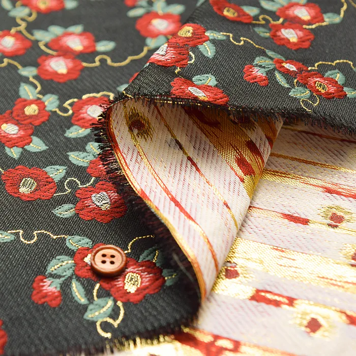 金糸や銀糸に色糸を交えて緯糸にし、紋様が浮き上がるように織った紋織物のひとつです。