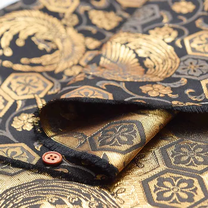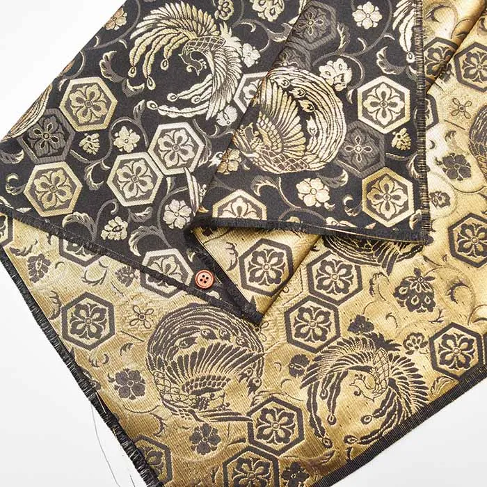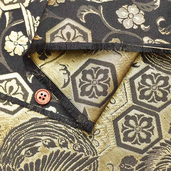 金糸や銀糸に色糸を交えて緯糸にし、紋様が浮き上がるように織った紋織物のひとつです。