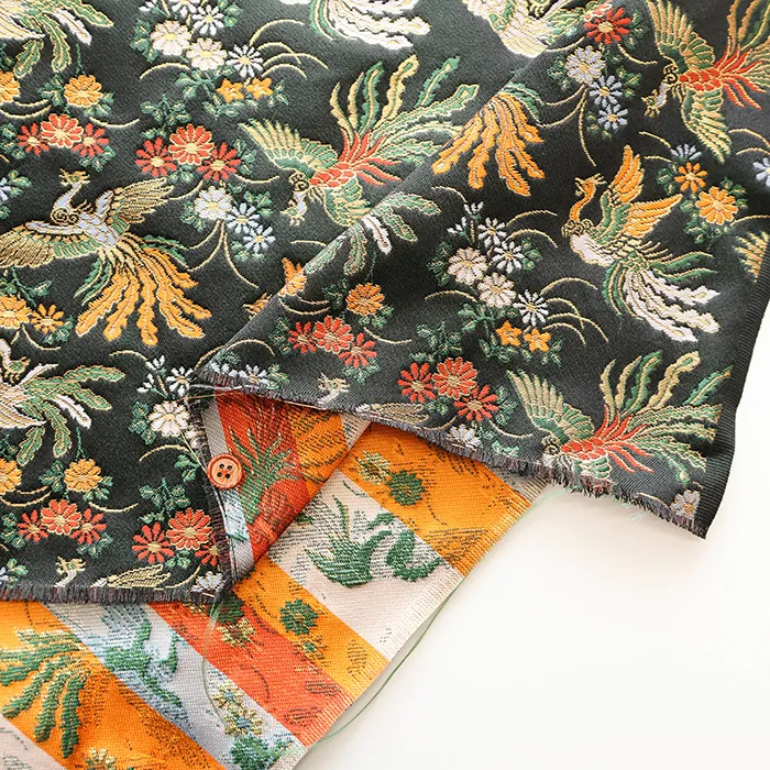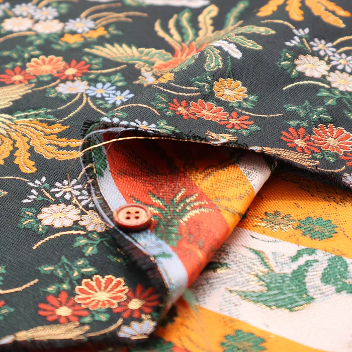 金糸や銀糸に色糸を交えて緯糸にし、紋様が浮き上がるように織った紋織物のひとつです。