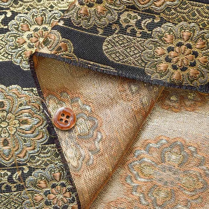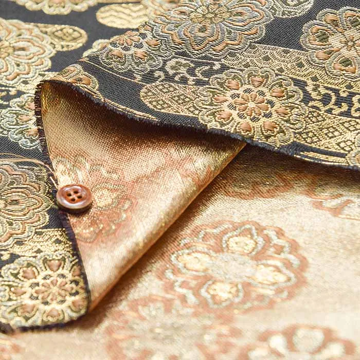 金糸や銀糸に色糸を交えて緯糸にし、紋様が浮き上がるように織った紋織物のひとつです。