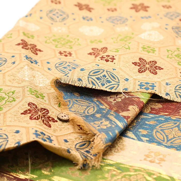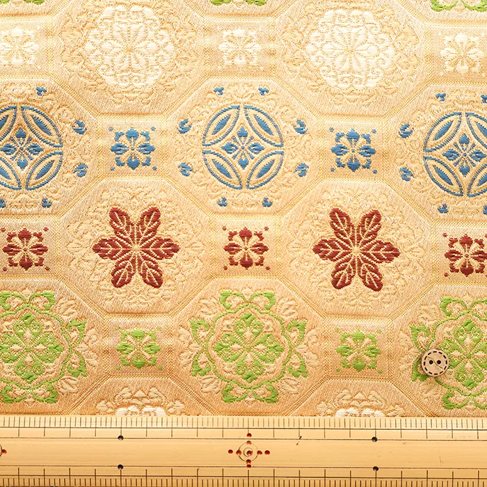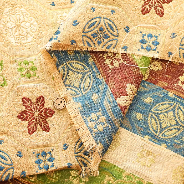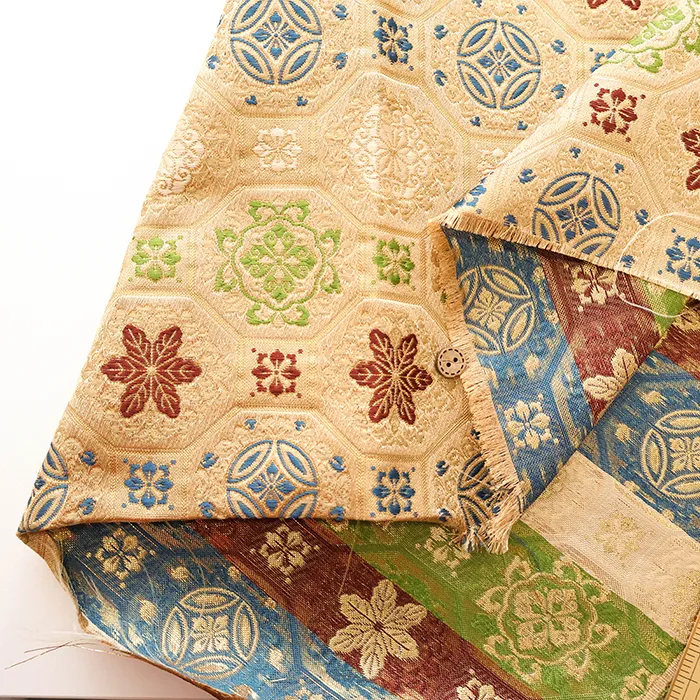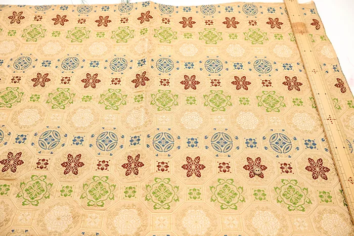 金糸や銀糸に色糸を交えて緯糸にし、紋様が浮き上がるように織った紋織物のひとつです。