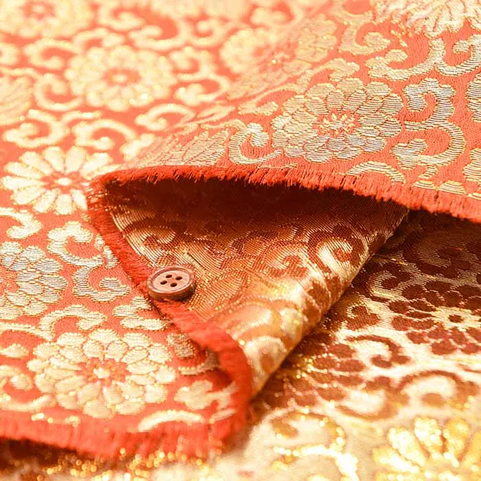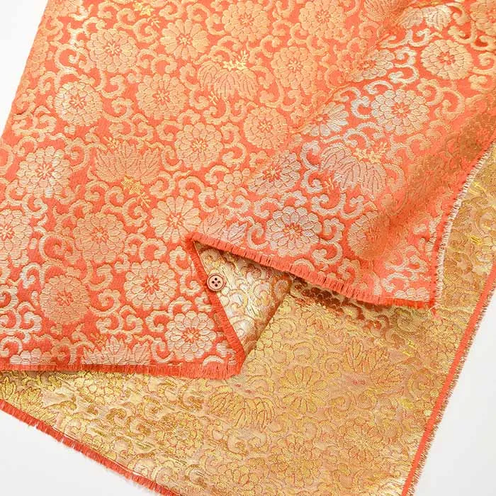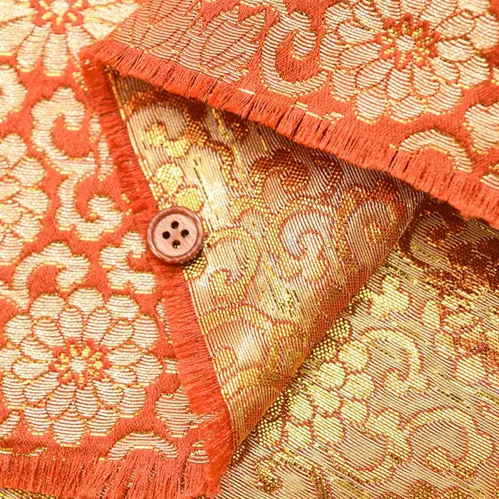 金糸や銀糸に色糸を交えて緯糸にし、紋様が浮き上がるように織った紋織物のひとつです。