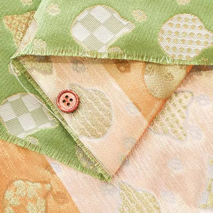 金糸や銀糸に色糸を交えて緯糸にし、紋様が浮き上がるように織った紋織物のひとつです。