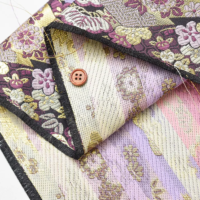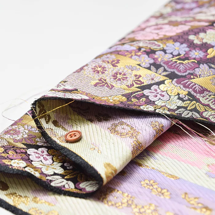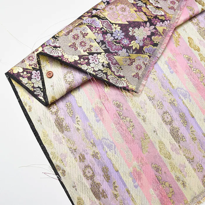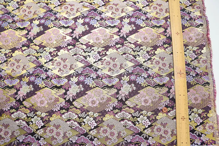 金糸や銀糸に色糸を交えて緯糸にし、紋様が浮き上がるように織った紋織物のひとつです。