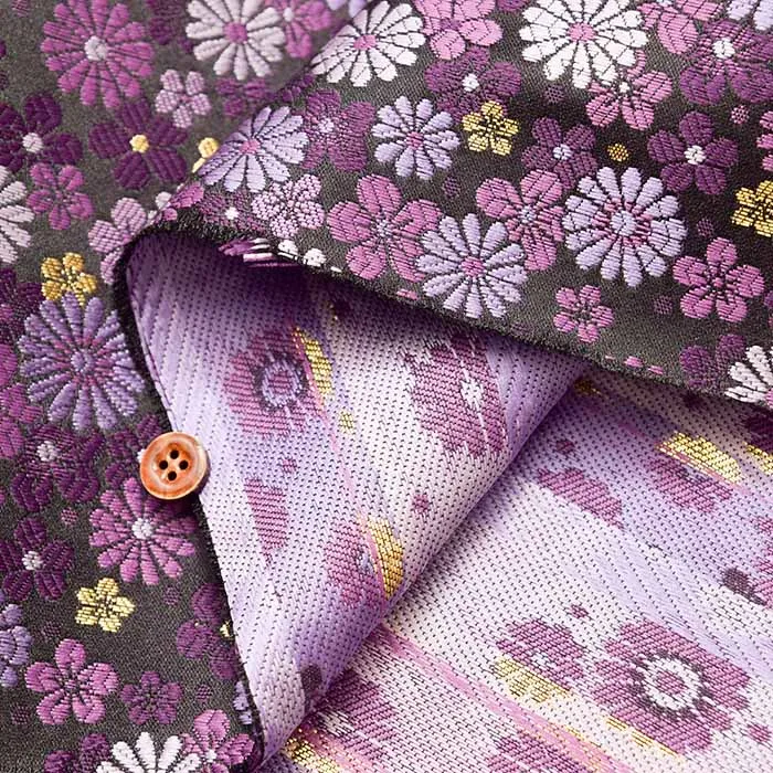 金糸や銀糸に色糸を交えて緯糸にし、紋様が浮き上がるように織った紋織物のひとつです。