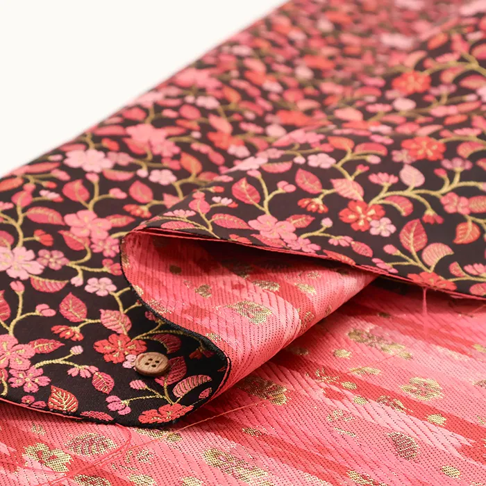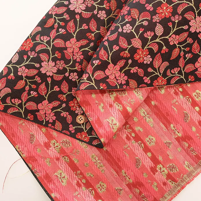 金糸や銀糸に色糸を交えて緯糸にし、紋様が浮き上がるように織った紋織物のひとつです。