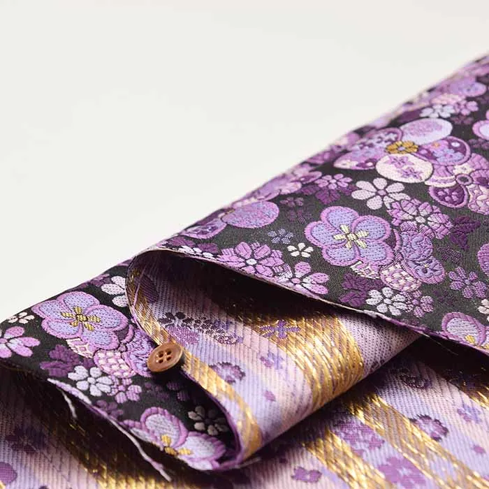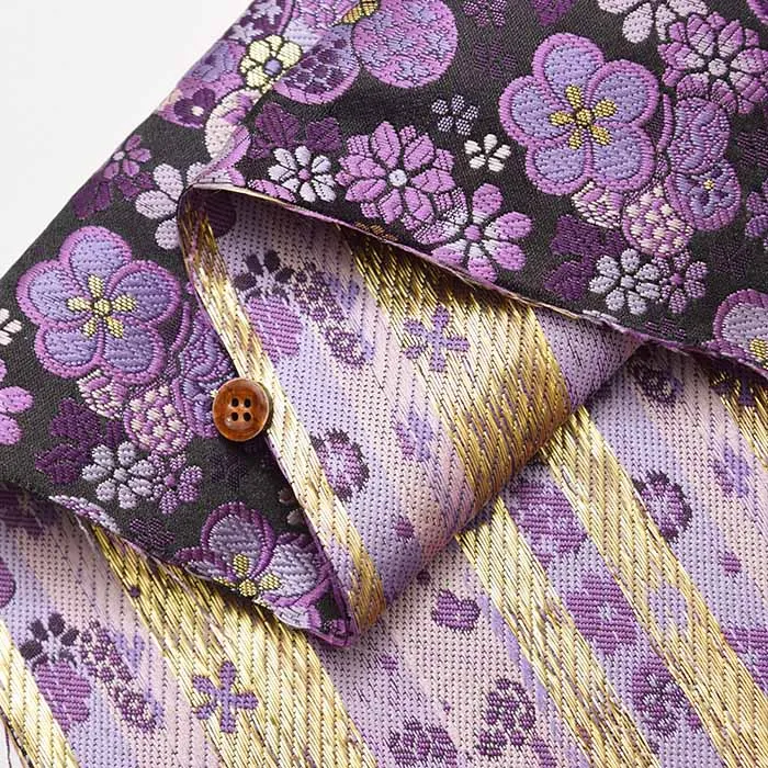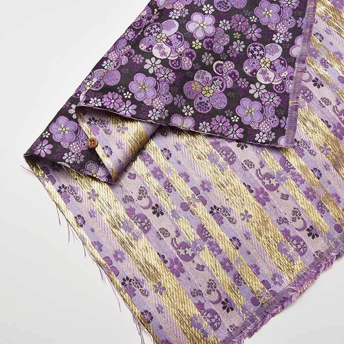 金糸や銀糸に色糸を交えて緯糸にし、紋様が浮き上がるように織った紋織物のひとつです。