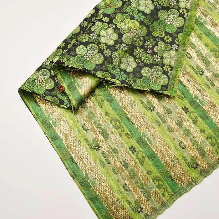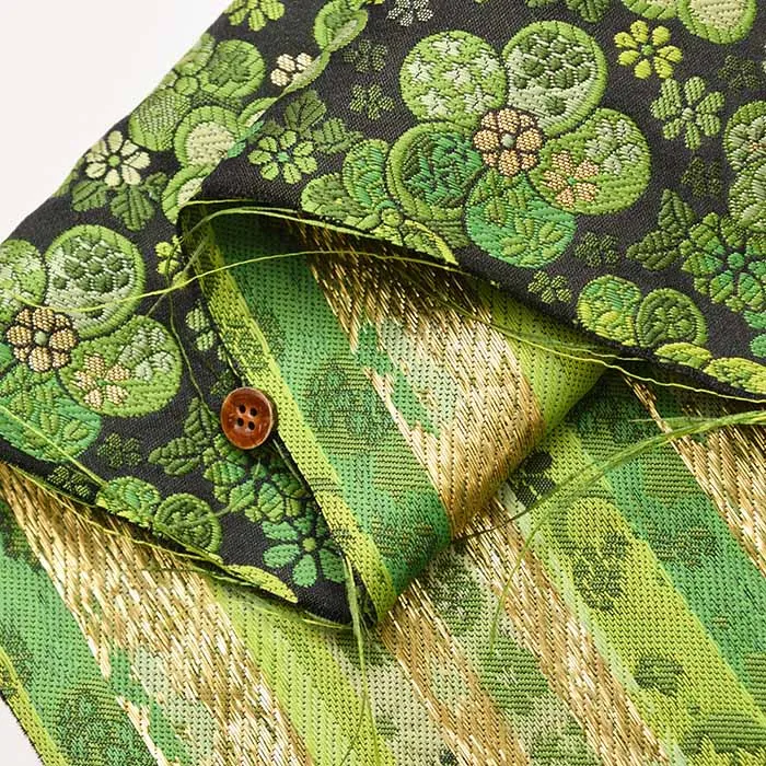 金糸や銀糸に色糸を交えて緯糸にし、紋様が浮き上がるように織った紋織物のひとつです。