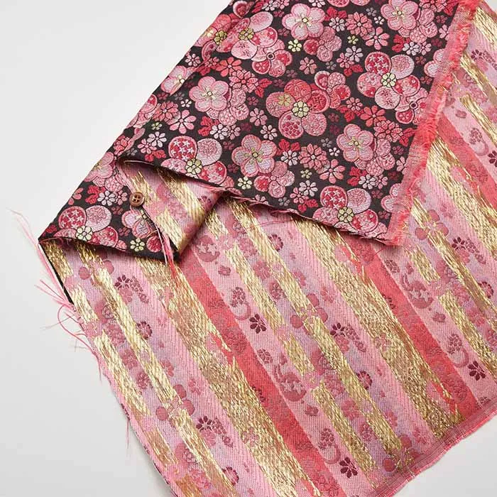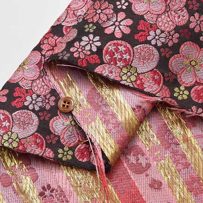 金糸や銀糸に色糸を交えて緯糸にし、紋様が浮き上がるように織った紋織物のひとつです。
