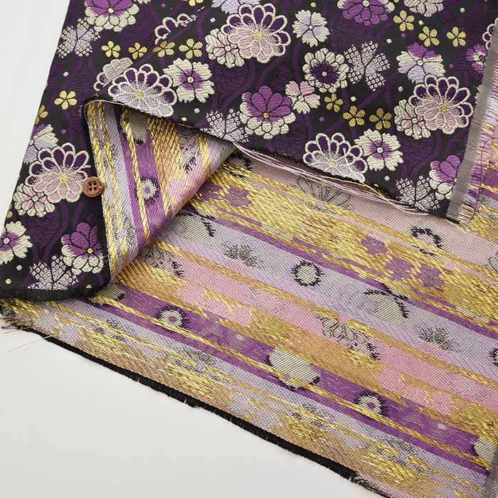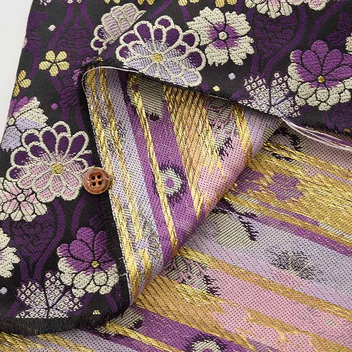 金糸や銀糸に色糸を交えて緯糸にし、紋様が浮き上がるように織った紋織物のひとつです。
