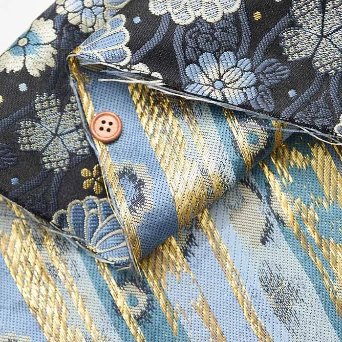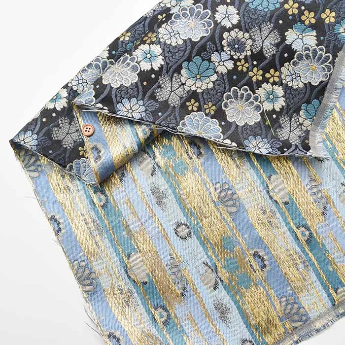 金糸や銀糸に色糸を交えて緯糸にし、紋様が浮き上がるように織った紋織物のひとつです。