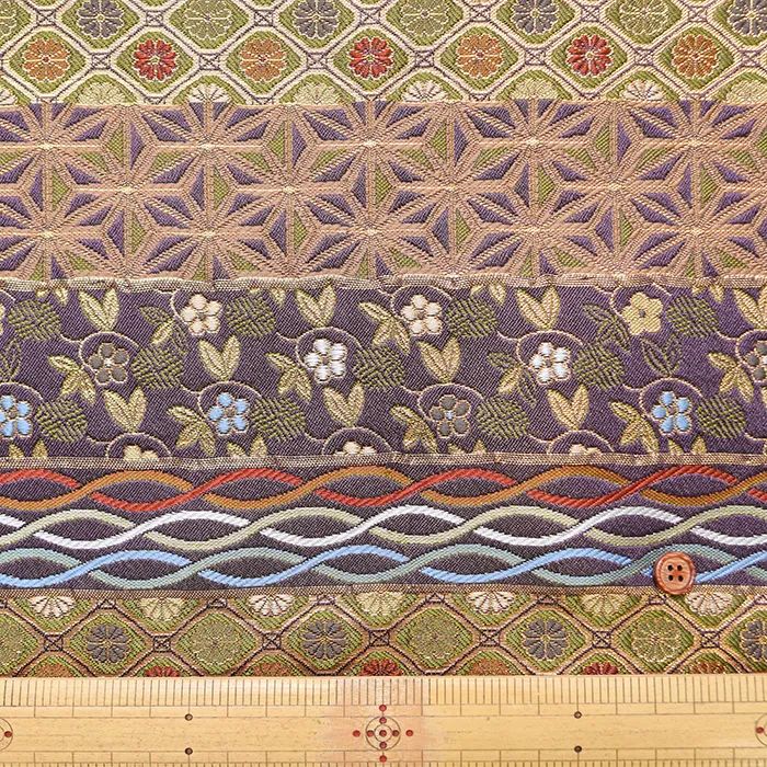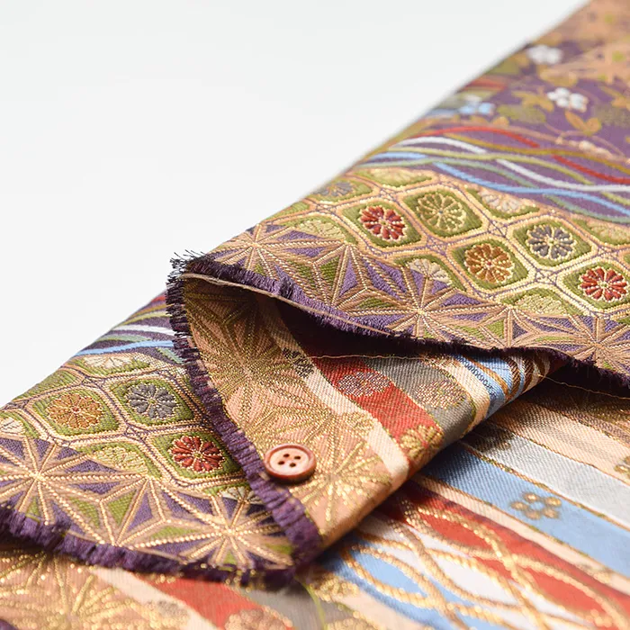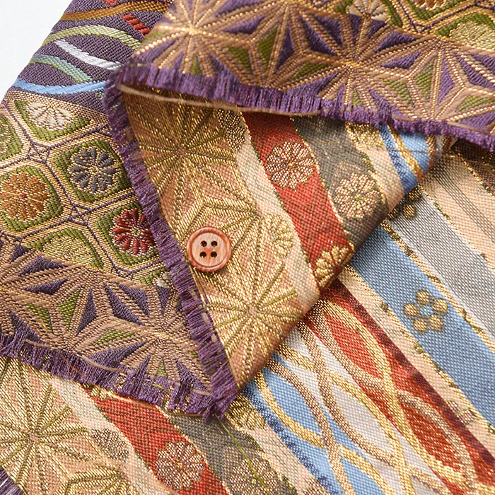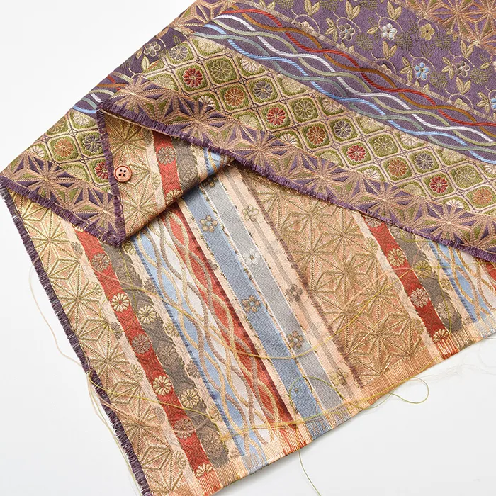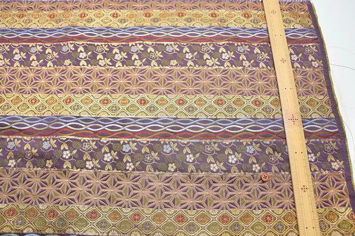 金糸や銀糸に色糸を交えて緯糸にし、紋様が浮き上がるように織った紋織物のひとつです。