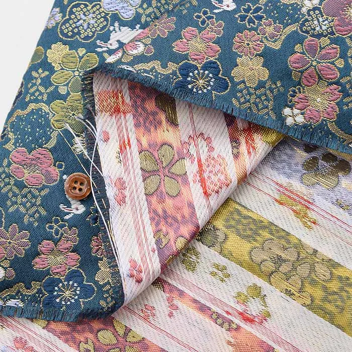 金糸や銀糸に色糸を交えて緯糸にし、紋様が浮き上がるように織った紋織物のひとつです。