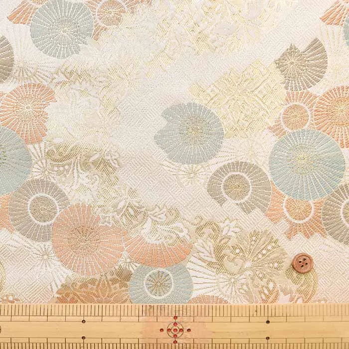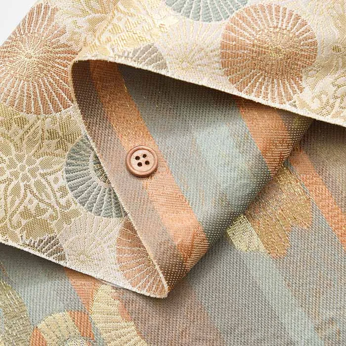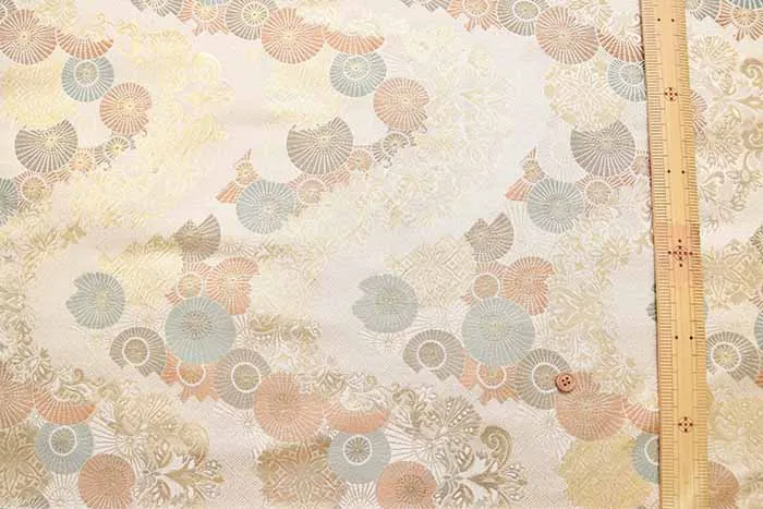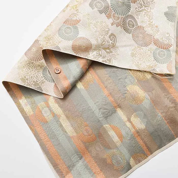 金糸や銀糸に色糸を交えて緯糸にし、紋様が浮き上がるように織った紋織物のひとつです。