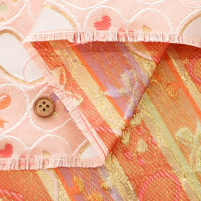 金糸や銀糸に色糸を交えて緯糸にし、紋様が浮き上がるように織った紋織物のひとつです。