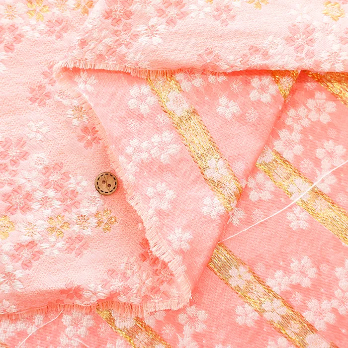 金糸や銀糸に色糸を交えて緯糸にし、紋様が浮き上がるように織った紋織物のひとつです。
