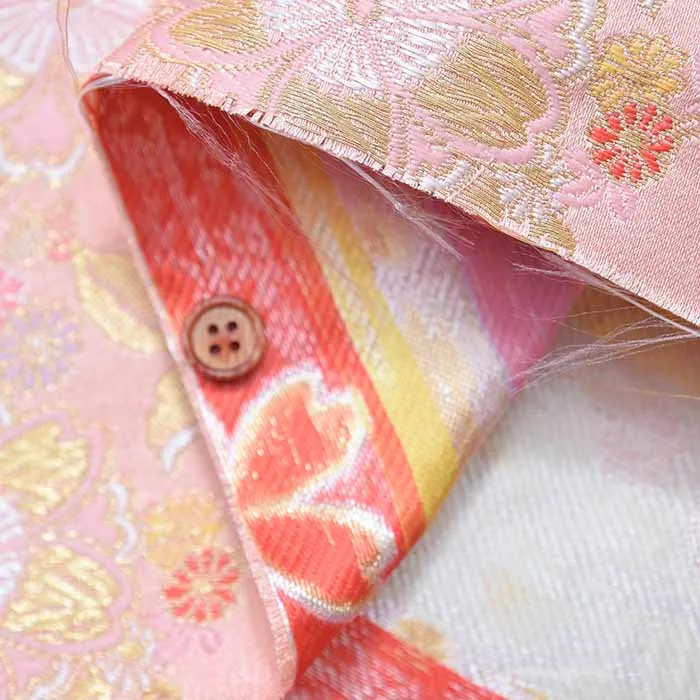 金糸や銀糸に色糸を交えて緯糸にし、紋様が浮き上がるように織った紋織物のひとつです。