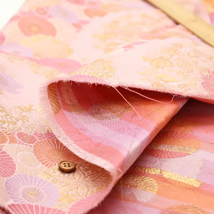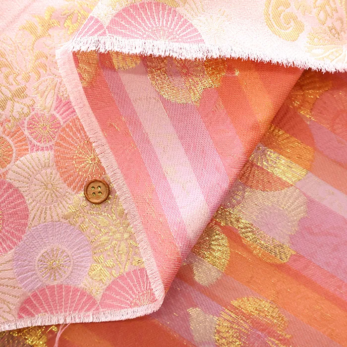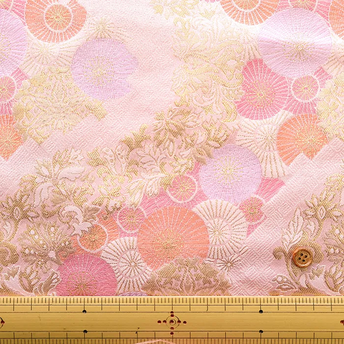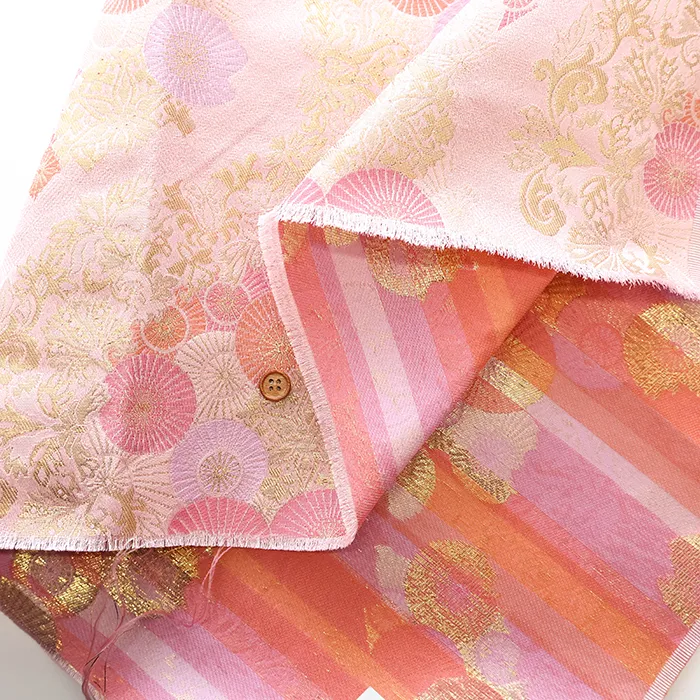 金糸や銀糸に色糸を交えて緯糸にし、紋様が浮き上がるように織った紋織物のひとつです。